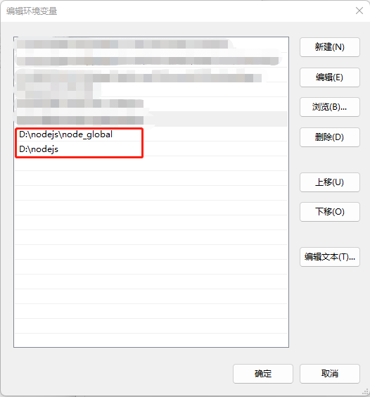 在解压缩的文件夹中新建这两个文件夹,我这边是放D盘了,且名字改为了nodejs,以下截图都是这个路径为参考